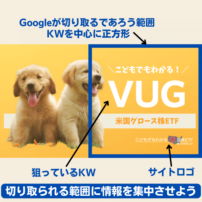 それならば、今から準備しておくべき。検索結果の画像は正方形に切り抜かれます。テキストを追いかけて、テキストのある場所を切り抜いてきますが、例外もあります。中央にテキストを集めておくのが一番安心ですね。